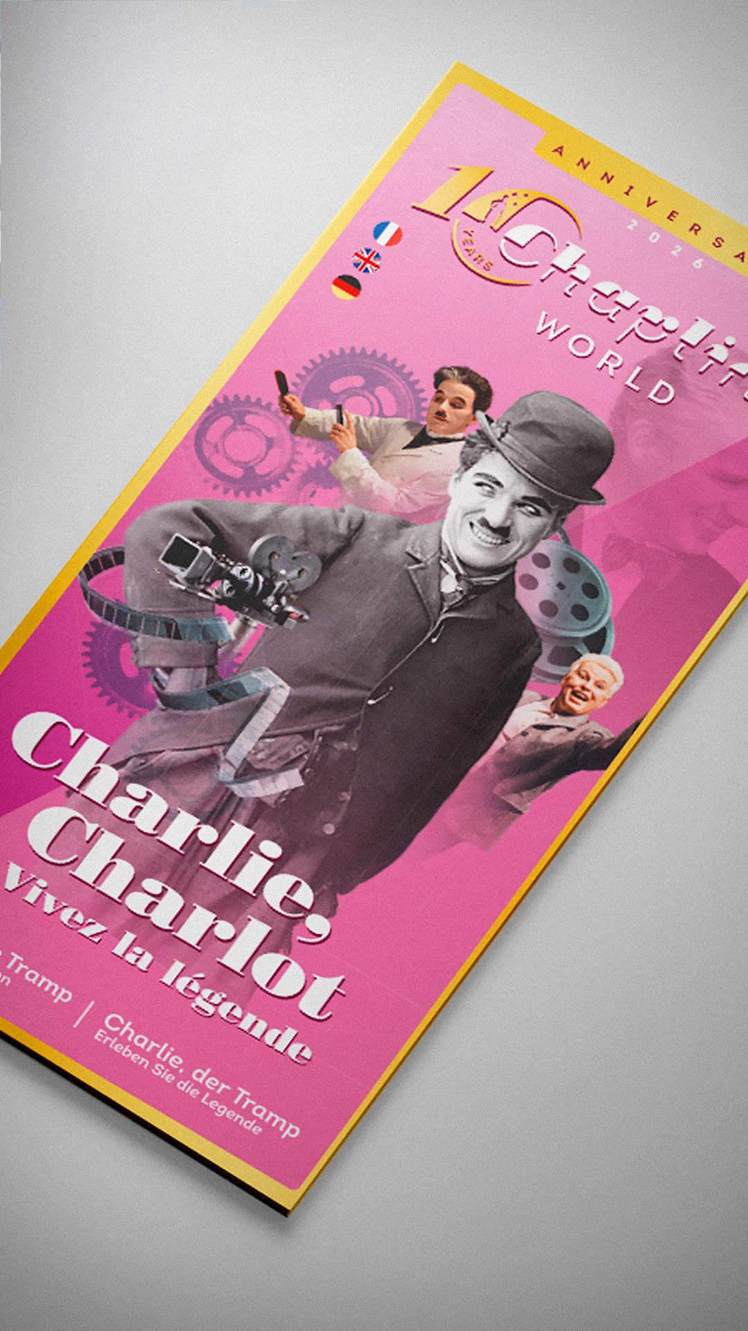 Nouvelle identité, nouvel élan. Pour Chaplin’s World, nous avons repensé l’univers visuel en rendant hommage à Charlie Chaplin, à sa gestuelle, sa dynamique et son sens du mouvement.